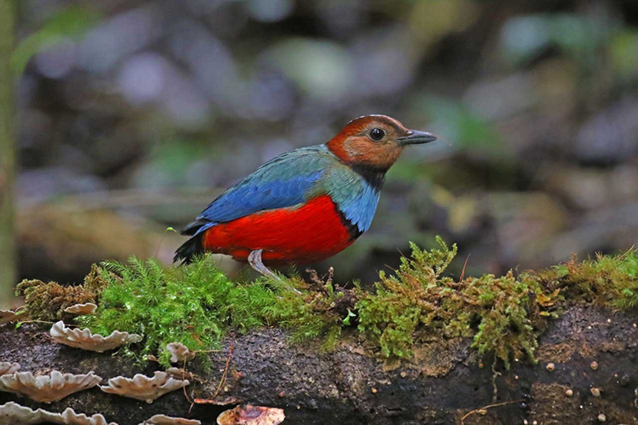 Tiny but splashy colored forest kingfisher. It has the size of a Tit, but once in sight the bright orange, purple and blue colors make it a favorite for many bird watchers.
